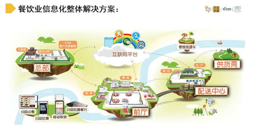 以财务为中心,对企业业务流、资金流、物料流、信息流、客流进行统一化、自动化的管理,从而实现减轻一线操作人员的劳动强度,减少人员使用、提升客流、增厚和老客户关系、优化企业菜品及服务、降低成本,减少损耗,加强财务审核管理。
