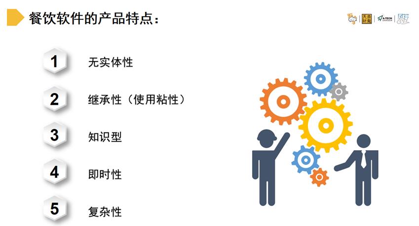 3、 知识性:餐饮软件作为一个集合了和集成了众多餐饮职业经理人长达二十多年的管理经验的软件产品,需要掌握它的人既懂软件、电脑、网络等it技术,还需要了解餐饮企业运行机制,根据餐饮企业的发展阶段、业态、规模、区域等适配适合的餐饮管理系统,所需要的知识型比较高,是个典型的“高知识”产品。