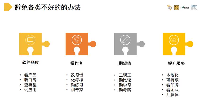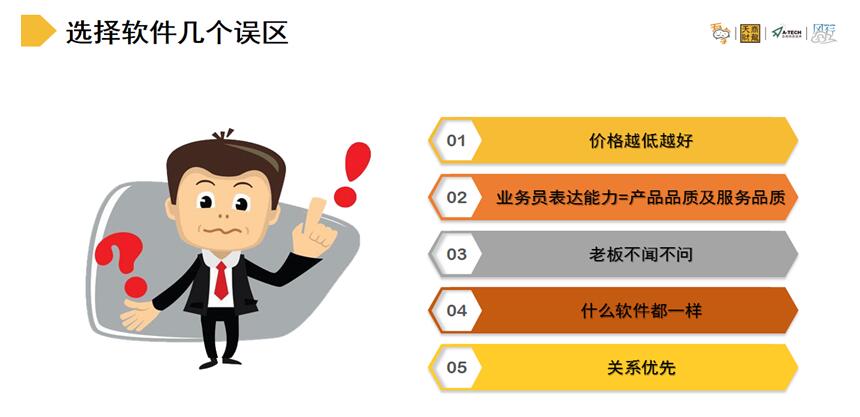 其实,正是这时候最容易陷入误区。为什么呢,因为业务员宣扬的功能丰富并不一定是真实的,也未必是我们当期所需要的,另外表达能力和关系更不代表产品和服务的品质,我们一定要根据无风险选择产品的原则来判断,价格更不能作为选择软件的重要标准。