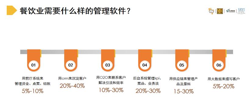 1)根据业态有中、西、快、火锅、团等:企业所处的业态不一样、客户群体不一样、产品结构也不一样、管理和服务模式也不一样,因此需求也不一样,具体需求要和咨询顾问一起确认。