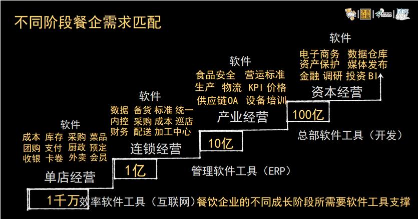 餐饮企业选择管理软件必须从需求出发,根据自己企业的发展阶段、业态、管理需求匹配当前所需要的管理软件,同时也要考虑好未来企业成长后所选用系统的可扩展性和对企业发展引领性。因此选择产品既要考虑当下,也要考虑未来。