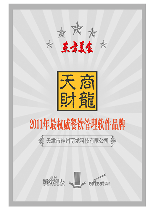天财商龙蝉联最权威最专业称号---2010-2011东方美食十大客户最满意餐饮管理软件