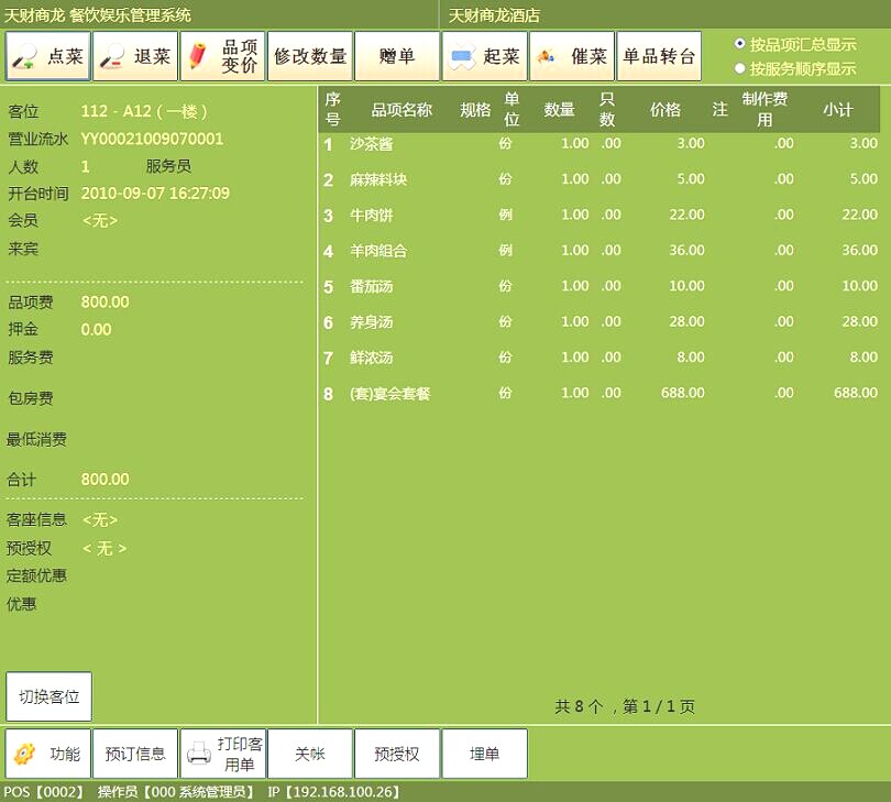 天财商龙餐饮娱乐管理系统推出的“触摸屏版”点餐系统,为中高档餐饮行业用户提供了新的选择。