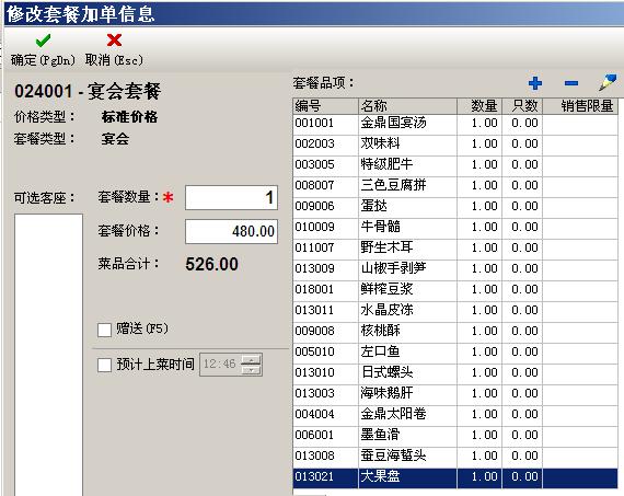 选择宴会套餐时,可临时增加或取消菜品,可调整套餐价格