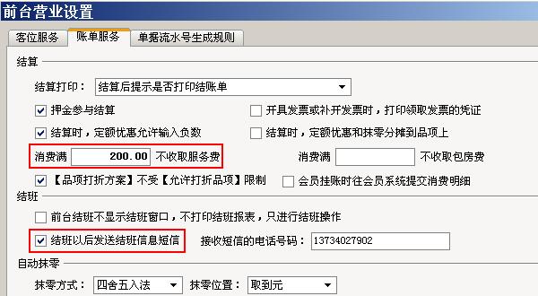 前台营业时加、退单、结算、结班、抹零、流水号生成等相关设置