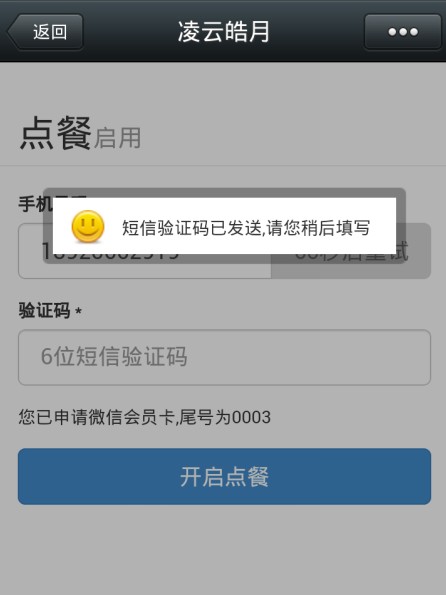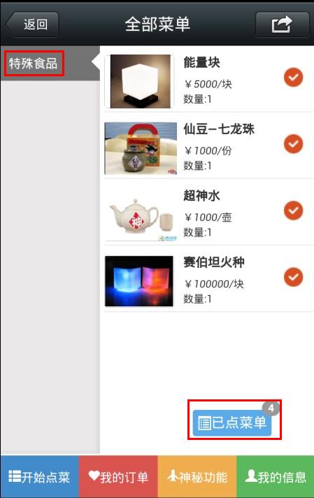 2. 认证后,进入微信点餐界面