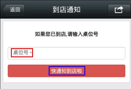 6. 当点餐顾客到达店面时,选择空闲的座位。回到微信选择订单,输入该座位号,通知到店。