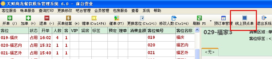 1、全方位显示客位的占用情况及各台位的消费明细