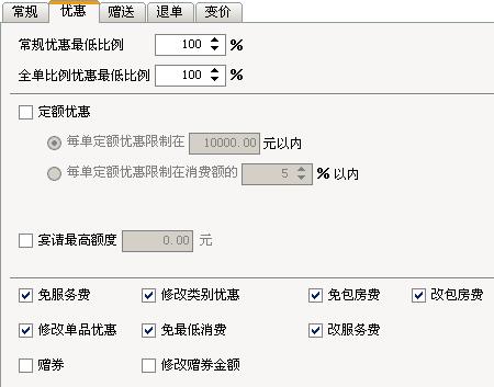 在台位结账之前做打折、免服务费等特殊操作的预授权处理,方便结账时操作。
