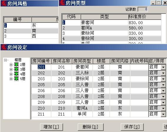 设置各种房间风格、房间类型,所有房间的编号、名称、类型及内线号码
