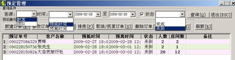 可以按照客源类型、预抵时间、预离时间、完成的状态过滤查询
