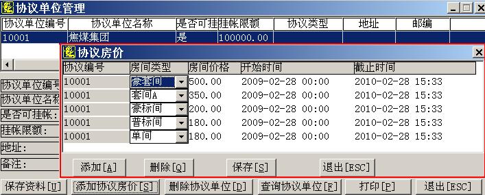 设置协议单位可否挂帐、挂帐限额、协议房价等信息