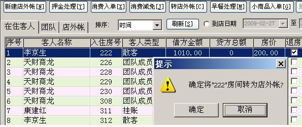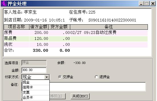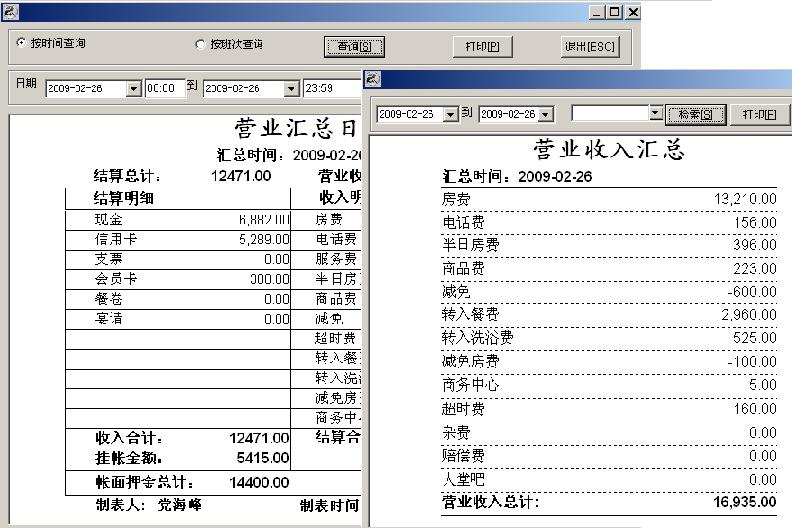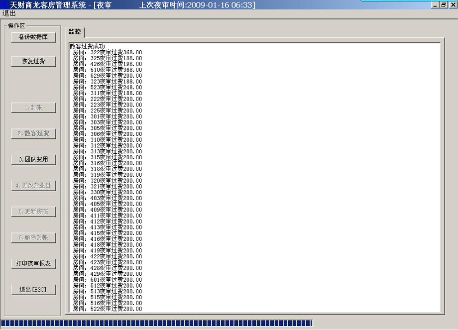 数据备份、封帐、过房费、更改营业日、打印报表等功能。