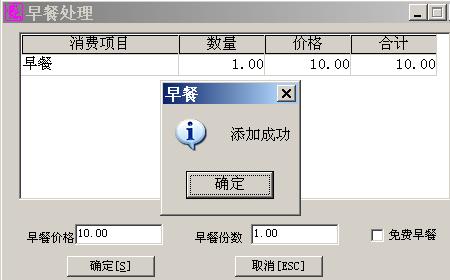 对房间录入早餐价格及份数,可设定是否为免费早餐。