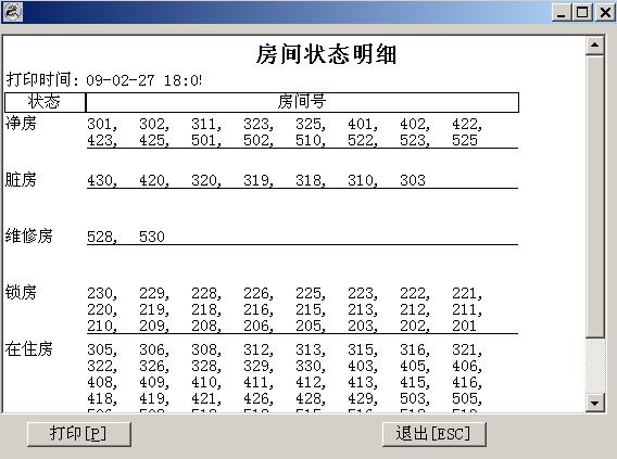 汇总统计当前各种房态的房间数,各种房态的房间明细