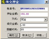 续交押金:客人消费金额大于押金时,进行续交押金,可以设置押金提醒时间