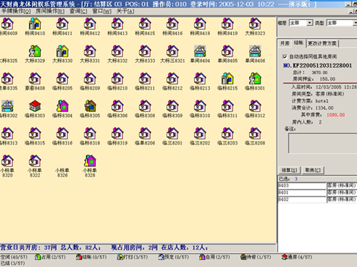 前台采用了直观的操作界面,所有手牌都整齐排列在屏幕上,即时显示每个客人的情况,通过输入手牌编号直接定位,开牌时可输入押金,按功能键即可完成。