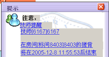 技师为客人服务到时没有自动落钟,屏幕提示技师的编号、服务项目、房间号