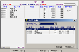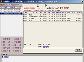 采用编号、拼音字头、光标选择录入/退掉客人的消费项目,同时可录入服务员编号,登记手工单号