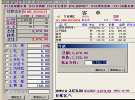 一人结多人帐、结算部分消费品项、结所有人中的部分帐等结帐模式;现金、支票、信用卡、会员卡、预付款—只要您想到的方式,我们的系统都能支持。灵活的打折法—既可以定额的打折也可以按类别或比例打折,另外还支持签单和预结功能。