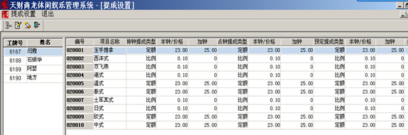 灵活的技师提成设置,相同的品项针对不同的技师可按比例和定额设定提成