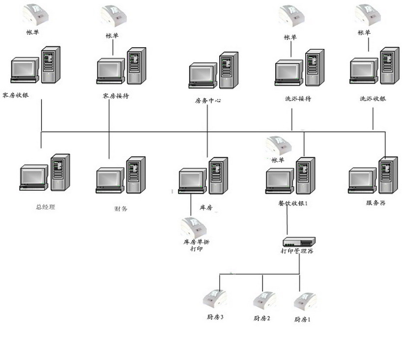厨房打印机2台:厨房各档口出单